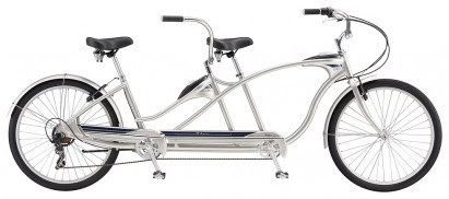 Frame: Schwinn Tandem cruiser 26 aluminum, with integrated cup holder & bottle opener Fork: Schwinn rigid steel, 1 1/8 Rims: Alloy 36-hole Front Hub: Schwinn alloy bolt-on 36-hole Rear Hub: Schwinn alloy bolt-on 36-hole Spokes: 14G stainless Tyres: Schwinn cruiser, 26 x 2.0 Pedals: Schwinn Classic chrome and rubber cruiser pedal Crank: Alloy Tandem 36t/39t Bottom Bracket: Cartridge Chain: KMC Z51, 7-speed Rear Cog: Shimano Tourney , 14-34, 7-speed Rear Derailleur: Shimano Tourney Shifters: SRAM MRX Grip Shift Handlebars: Cruiser steel, 25.4 Stem: Alloy quill, 25.4 Headset: Threaded, 1 1/8 Brakes: Alloy V-brake Brake Levers: Schwinn alloy Saddle: Schwinn cruiser spring Seatpost: Alloy, 27.2 x 300