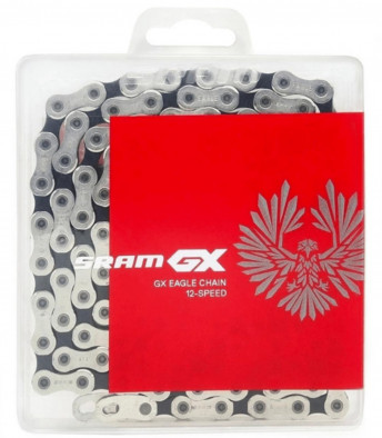 The SRAM GX Eagle 12 Speed 126L Chain is designed with Flowlink technology, PowerLock and Eagle Technology making it a superior chain in all the areas that matter. The Flowlink technology means that the inner-plates are utterly devoid of squire edges resulting in a chain that engages the cassette and chainring with far less friction resulting in quieter performance and better wearing. It can withstand greater angles thanks to its narrower overall profile. The PowerLock technology makes for tool-free precision installation which, along with Flowlink, also enhances overall strength. This chain is simply superb at what it does; help you dominate on two wheels. Key Features: - 12-speed - 126 links - Made from steel - Nickel outer link coating - Black anodised inner link coating - It has PowerLock and Flowlink technology