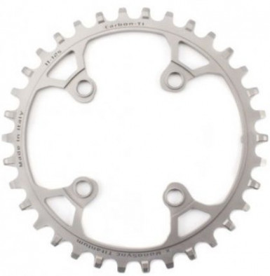 Features - Titanium Grade 5 syncronized "narrow/wide" single-chainring for 4 arms 76 mm BCD cranksets - The special Titanium Grade 5 alloy assures a three times longer lifes than any other aluminium alloy chainring. - It doesn't require the chain-guide. 10-11-12 speed groups compatible (SRAM Eagle included).