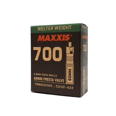 The Maxxis Road Tube 700x23–32C with a 60mm Presta (Removable Valve) is a high-quality inner tube designed for road cyclists who demand reliability and efficiency. Compatible with a range of road tyre widths from 23mm to 32mm, it provides a snug fit that helps maintain optimal tyre shape and pressure, resulting in smoother rides and better performance. The longer 60mm valve is ideal for deep-section rims, ensuring hassle-free inflation. Made from durable butyl rubber, this tube offers excellent puncture resistance while maintaining flexibility for ease of installation. Whether you're training, commuting, or racing, the Maxxis tube delivers dependable performance and long-lasting value. Features - Fits 700x23–32C road tyres - 60mm Presta valve suitable for deep-section rims - Durable butyl rubber for puncture resistance - Removable valve core for added convenience - Reliable performance for training, racing, or commuting