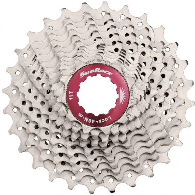 The SunRace RX1 11-28T 11spd Road Cassette offers excellent performance as an entry-level cassette for gravel, city, and road cycling. With its 11-28T range, it provides a reliable gear selection for tackling climbs and maintaining speed on the flats. The red alloy spider, paired with metallic silver cogs, adds a touch of style without adding unnecessary weight. Built with alloy spacers and a secure lockring, it delivers consistent shifting for daily rides and weekend adventures. Compatible with Road 11 HG setups, it’s an ideal choice for cyclists looking for quality and value in their drivetrain. Features: - Type: Gravel, City, Race - Material: Red Alloy Spider, Spacers & Lockring - Speed: 11-speed - Fitting: Road 11 HG - Color: Metallic Silver - Range11-28T