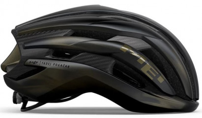 Met Trenta 3K Tadej Pogacar Black Edition Road Helmet pays homage to a rider who redefines cycling greatness. Inspired by Tadej’s triumphant season, the helmet’s striking Black finish speaks volumes—elegant black laced with golden veins symbolises excellence earned on the road. The limited edition piece honours not just victory, but the drive, poise, and edge that set legends apart. Every ride becomes a tribute to bold ambition and refined style. Let the spirit of a champion accompany every turn of the pedal. Features: - 3K Carbon Technology, embedded carbon fibre cage to enhance the performance of the shell - Mips AIR® rotational management system engineered to add protection and save weight - Exceptionally comfortable and secure on the head thanks to refined internal shape - In-mould polycarbonate shell with EPS liner MET Safe-T Orbital Fit System - 360° Head belt, vertical and occipital adjustments leave you with an individual fit - Air Lite straps with adjustable divider to maximise aerodynamic and comfort - 19 Vents, engineered internal air channeling system to improve ventilation and comfort - Sunglasses ports to securely dock sunglasses when climbing or resting - Tube-shaped Kamm virtual foil tail to improve aerodynamics - Rear deflector to enable a constant airflow in riding position - Limited head contact surface to maximise ventilation - Reflective rear decals to enhance visibility in low-light conditions
