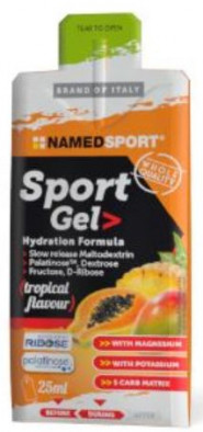 The Namedsport 25ml Gel - Tropical gives you instant and long-lasting energy thanks to the simple and complex carbohydrates. This tasty gel is the perfect consistency and vegan-friendly. The magnesium and potassium support muscle function during training. Key Features: - Made for before and during training sessions - Magnesium and potassium - Maltodextrin - Ajipure Amino Acids - Fat, gluten and lactose-free - Palatinose - Ribose - Time-Released - Vegan Friendly - Vegetarian
