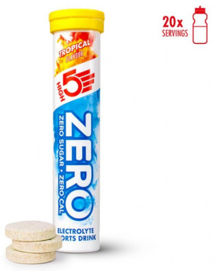 Stay hydrated and refreshed with High 5 Zero Tabs – Tropical. A light and fruity electrolyte drink that keeps you going without the sugar or calories. Sweat takes essential minerals away, but each tab helps restore them with sodium and magnesium, supporting hydration and muscle function. Added Vitamin C contributes to a healthy immune system and helps fight fatigue, keeping energy levels steady. Simply drop a tab into water, let it dissolve, and enjoy a tropical burst of flavour while staying on top of hydration. Perfect for any active lifestyle. Features: - Replace the electrolyte you lose through sweat - Light & refreshing electrolyte drink with natural fruit flavours - With added Vitamin C - Reduces tiredness and fatigue - Sugar free with zero calories - Contents: 20 tablets per tube - Suitable for vegetarians - Suitable for a wide range of sporting activities