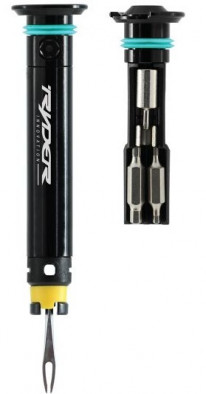 Ryder's In-Bar Groove Tool revolutionizes bike maintenance with its innovative chain tool carrier, designed to securely hold the chain breaker for optimal performance. A handy 6mm hex ring enhances stability, ensuring the chain breaker stays in place during use. With a selection of size-specific o-rings included, finding the perfect fit for your handlebars is effortless, guaranteeing a snug and reliable setup. Upgrade your biking toolkit with this essential tool, perfect for quick fixes on the go. Features: - Durable 7075 alloy with hard anodized ?nish - O-ring options to fit in 95% of handlebars GrooveTool: - CNC machined alloy construction - Ideal for hard-to-reach places: can be used in a ‘L’ or ‘I’ position - Includes: Chain breaker + 5 nickel-plated bits (10 tools) + storage space for chain links - Includes bits: 2; 2.5; 3; 4; 5; 6; T10 Torx, T15 Torx, T25 Torx, ?at screwdriver - Magnets keep chain breaker, chain links & bits in place when storing/using - Magnetic chain link storage (links not included) Slug Plug Dual: - Can pre-load two different sized slugs - Yellow C-clip ensures that slug does not stick to sides of protective caps - Two different needle widths, perfectly suited to different plug sizes - Pre-loaded ready to use - Includes: 5 x 1.5mm slugs / 5 x 3.5mm slugs