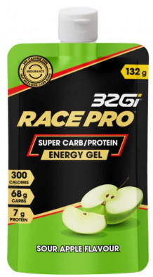 32Gi® Race Pro 300 Gel offers a high-calorie energy boost in a single sachet, providing the equivalent of three standard gels. Whether for training or racing, this gel helps improve performance without compromising on long-lasting energy. It contains a premium blend of rapidly absorbing and stable carbohydrates, including Cluster Dextrin™, to fuel the body quickly and sustain energy levels throughout the effort. The added protein supports muscle recovery and helps stabilise energy, reducing the risk of fatigue during extended activity.Designed for digestive comfort, the gel minimises the chance of stomach discomfort, making it easy to consume during intense or long-duration events. Perfect for endurance athletes, the resealable packaging ensures convenience during ultra-marathons, triathlons, or stage races. Free from artificial additives, sweeteners, and colours, it is a clean, WADA-compliant option for athletes seeking reliable, high-quality energy. Features - High-Calorie Energy: Delivers the equivalent energy of three standard gels in one sachet, improving efficiency during training or racing. - Immediate and Sustained Energy: Formulated with a blend of fast-absorbing and stable carbohydrates, providing both quick energy and long-lasting fuel. - Premium Carbohydrate Blend: Includes Cluster Dextrin™ for enhanced carbohydrate absorption, ensuring rapid energy supply within moments of consumption. - Protein for Muscle Support: Contains high-quality, easily absorbed protein to stabilise energy and reduce muscle fatigue. - Digestive Comfort: Designed to minimise the risk of gastric distress, making it gentle on the stomach during intense physical activity. - Resealable Packaging: Conveniently designed for long endurance events, such as ultra-marathons and long-course triathlons, allowing for easy storage and use. - WADA Compliant: Free from banned substances, ensuring compliance with anti-doping regulations for competitive athletes. - No Artificial Additives: Contains no artificial sweeteners, colours, or additives, providing a clean, natural energy source. - Ideal for Endurance Athletes: A reliable energy source for athletes participating in long-duration activities like stage racing and ultra-endurance events.