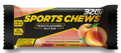 The 32GI Race chews are an energy-dense calorie packed chewable that helps to sustain stable energy demands of long duration activities. They are easy to eat, will not get stuck in your teeth or block your airways and the 32Gi® Sports Chews are the perfect companion for the run, bike, or anywhere on the go. There is no mess and as a result can be removed from packaging before an event for convenient to access. You will always have stable energy with the PalatinoseTM and other carbs to deliver ready to use energy and delay bonking by sparing glycogen, which the body can quickly turn into fuel when needed. Features: - 2-hours of stable low gi energy - Energy-dense calorie packed in each portable Chews packet helps to sustain stable energy demands of long duration activities. - Replace your gels - Easy to eat, will not get stuck in your teeth or block your airways. 32Gi® - Sports Chews are the perfect companion for the run, bike, or anywhere on the go. - No melting = no mess - Can be removed from packaging before an event = Convenient to access. - Developed around the banana - The banana for years has been considered a great endurance fuel (but not that convenient as you can imagine), 32Gi® Sports Chews has emulated the sugar response, and caloric values of 2 ripe medium sized bananas. - Multi-transportable carbohydrates ? Stable energy with PalatinoseTM and other carbs to deliver ready to use energy and delay bonking by sparing glycogen, which the body can quickly turn into fuel when needed. - Zero banned substances - fully compliant with WADA standards. - No artificial additives promise - Rest easy knowing that 32Gi® Sports Chews have no artificial sweeteners, flavours or colours