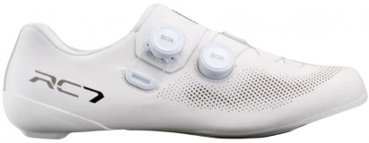 The Shimano SHRC703 Men's Road Shoe is a high-end, race-ready cycling shoe that combines lightweight design with superior comfort, ensuring you stay at the forefront of the competition. Featuring a low stack height midsole and refined instep straps, it delivers an optimal pedalling platform for enhanced power transfer. The synthetic leather upper, enhanced with strategically placed perforations, ensures excellent breathability, keeping you cool and comfortable during intense rides. Its surround wrapping design accommodates a wide range of foot shapes, while the dual micro-adjustable BOA L6Z dial allows for a personalised fit, making the RC703 a top choice for serious cyclists seeking performance and quality. Features: - The updated RC703 is a race-ready road cycling shoe that’s lightweight, comfortable, and designed to help keep you at the front of the pack. - Optimal Efficiency: Low stack height midsole, refined instep straps, and new Power Zone lace guides provide stable pedaling platform for enhanced power transfer. - Breathability: Synthetic leather upper with strategically- placed perforations increases ventilation, keeping you cool and comfortable when the race is on. - Dialed Fit: Surround wrapping upper accommodates broad range of foot shapes, while dual micro-adjustable BOA L6Z dial enables a personalized fit.