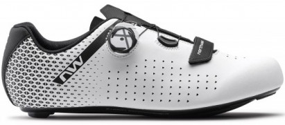 The Northwave Core Plus 2 is a versatile road cycling shoe designed for riders seeking a balance of comfort, performance, and value. Its sleek white design is complemented by a seamless unibody upper construction, reducing pressure points and enhancing overall comfort during long rides. The shoe's breathable mesh inserts and micro-perforations ensure optimal ventilation, keeping your feet cool and dry. Equipped with the SLW3 dial closure system and an additional Velcro strap, the Core Plus 2 offers precise, step-by-step adjustments for a secure fit. The NRG Air Carbon Reinforced sole, with a stiffness index of 8.0, provides efficient power transfer to the pedals. Compatible with both 3-bolt road cleats and SPD systems (with an adapter), this shoe caters to various pedal preferences. Features - NRG Air Carbon Reinforced sole with a stiffness index of 8.0 - Seamless unibody upper construction for reduced pressure points - Four breathable mesh inserts and micro-perforations for ventilation - SLW3 dial plus Velcro strap for precise fit adjustments - Compatible with 3-bolt and SPD pedal systems (adapter not included)