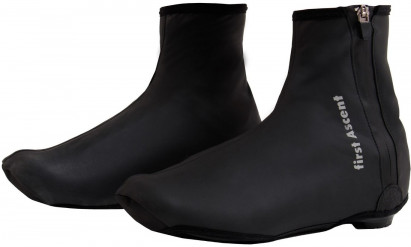 These versatile booties are designed to keep your feet protected from cold, windy, and wet weather conditions while cycling. Features: - Elastic wind and water resistant fabric that creates an aerodynamic fit - Kevlar reinforcements for durability - Water repellent zipper - Reflective First Ascent prints